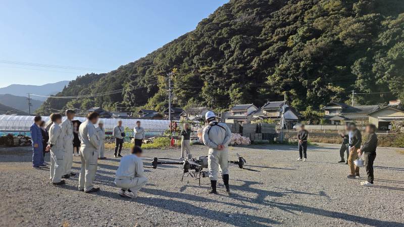 当社が購入したのは大型の運搬用産業ドローンです。機体性能をお披露目するため、関東事業所や関係業者の方をお呼びし、当社保有の土佐市の倉庫にて行われたテストフライトの様子を紹介します。