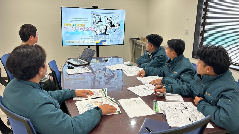 雇い入れの際には、建設現場の安全に関する入場時教育や日本での生活に必要な ルール等の説明を実施します。言語や文化の違いもありますが、教材や説明資料を一緒に翻訳しつつ、丁寧に説明し理解を促しています。また、先輩社員と同じ会社の寮に入居することで生活面のサポートもしています。